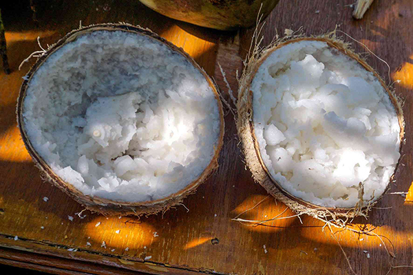 Untuk membedakan kelapa kopyor dengan kelapa biasa, bisa dengan menggoyang-goyangkan buah ke kiri dan ke kanan, dan akan terdengar bunyi seolah buah kelapa tersebut bukan terisi air tetapi terisi pasir. Buah kelapa kopyor ini memiliki rasa yang berbeda dengan kelapa biasa, sehingga keunikan rasa yang khas ini kerap dijadikan minuman yang sangat istimewa.