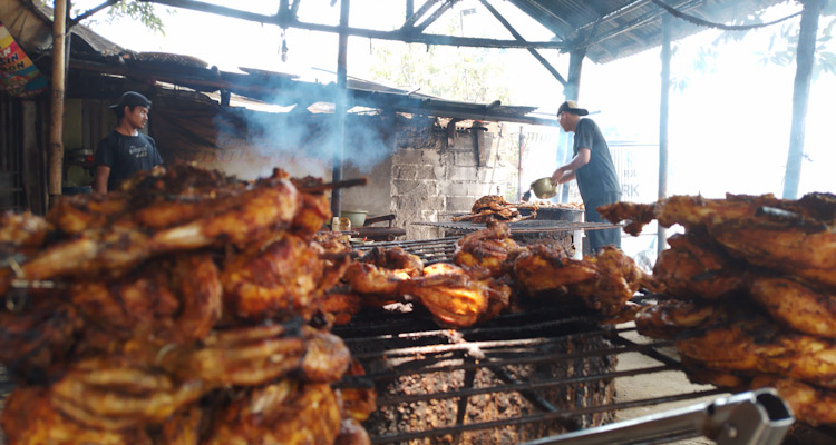 Tempat pembakarannya pun unik yaitu di atas drum, dengan jarak antara api dan ayam tidak terlalu dekat. Sehingga proses pembakarannya seperti diasap. Ini yang membuat sensasi dagingnya kering, gurih dan bikin nagih. Ditambah lagi dengan polesan bumbu rempah yang semakin kering makin meresap.