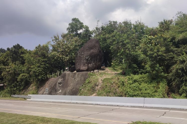 JEJAK KATA, Cirebon – Jika kita melintas di Kilometer 182 Tol Cipali (Cikopo-Palimanan), kita akan melihat batu besar di atas tebing di tepi jalan tol. Batu berukuran tinggi hampir lima meter ini bernama Batu Bleneng. Bongkahan batu berbentuk semi oval yang berlokasi di Desa Walahar, Kecamatan Gempol, Kabupaten Cirebon, banyak menarik perhatian pemakai jalan tol.