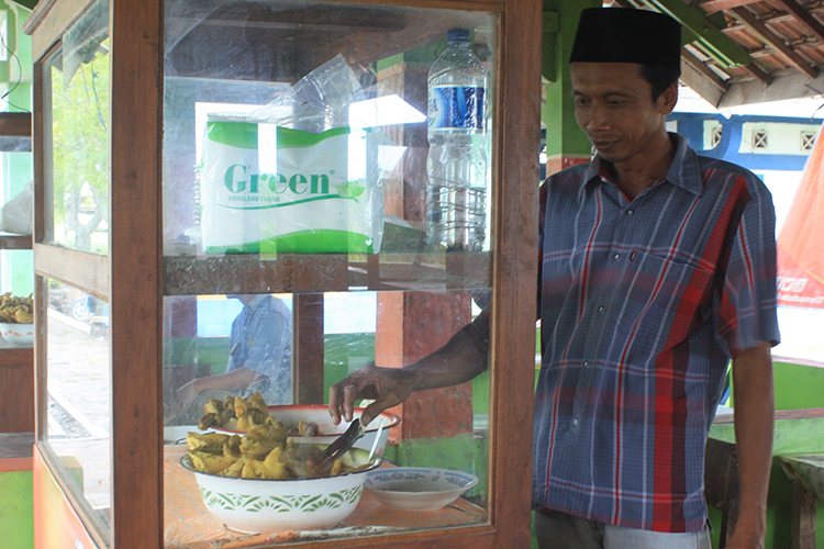 Seorang penjual lontong di area Kuliner Khas Rembang Lontong Tuyuhan, di Desa Tuyuhan.